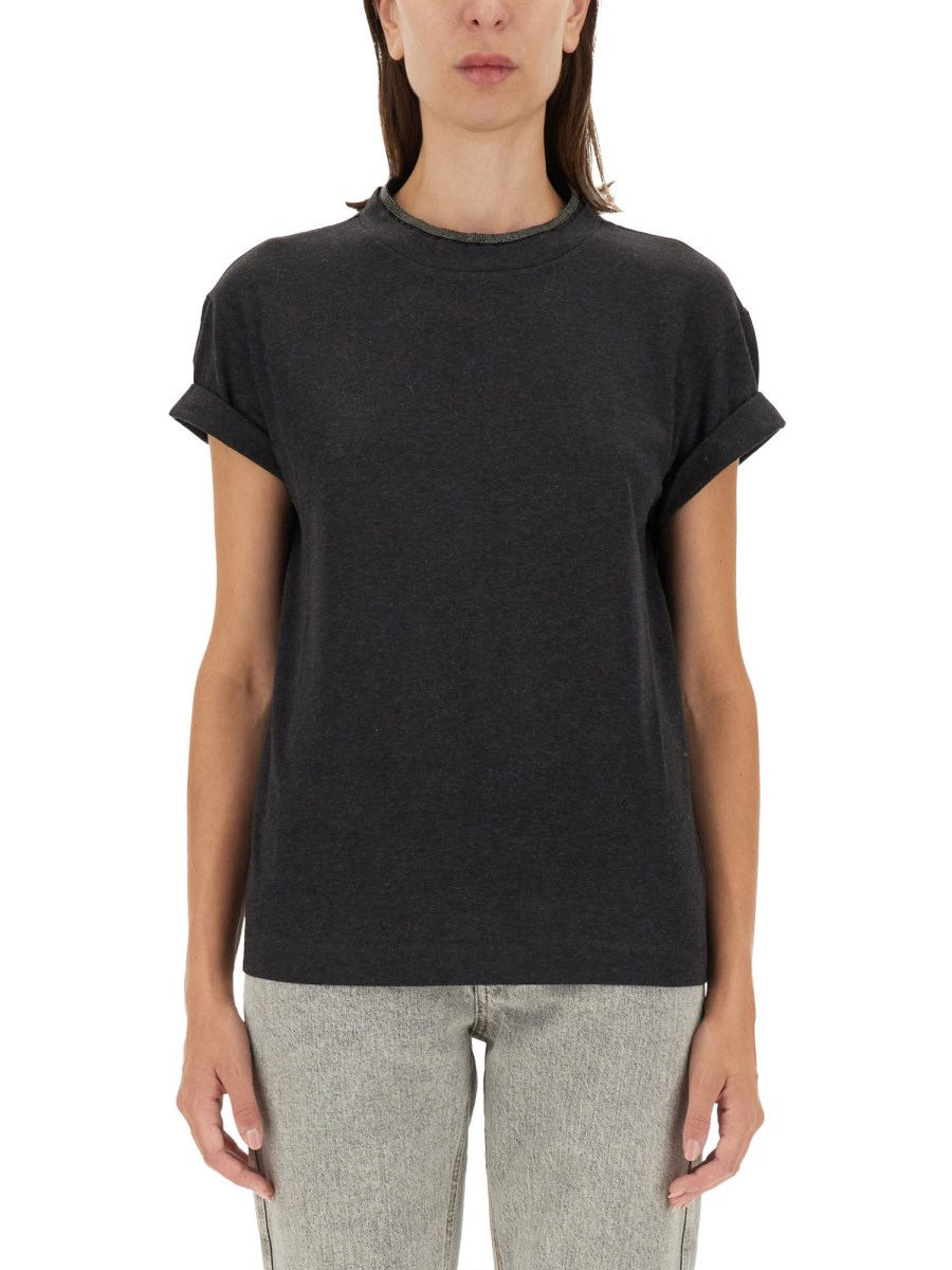 BRUNELLO CUCINELLI T-SHIRT IN JERSEY DI COTONE CON MONILE