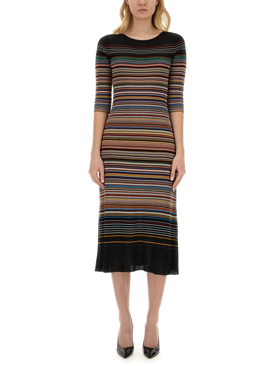Questo abito di Paul Smith combina senza sforzo comfort, stile e versatilità per creare un'aggiunta indispensabile al vostro guardaroba. Caratterizzato da un classico girocollo e da maniche a 3/4, questo abito offre un look chic ed elegante, perfetto per ogni occasione. La lunghezza midi aggiunge un tocco di raffinatezza, mentre la lusinghiera silhouette bodycon accentua le vostre curve nei punti giusti.
