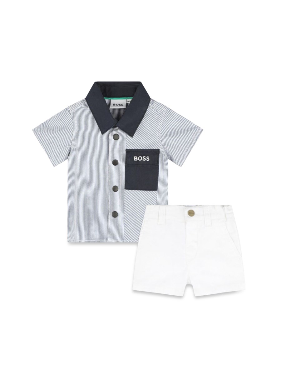 Questa camicia di Boss è un'aggiunta indispensabile al guardaroba del vostro piccolo. Realizzata in tessuto di prima qualità, offre stile e comfort, assicurando che il bambino si senta a proprio agio durante la giornata. Grazie al design classico del colletto, questa camicia aggiunge un tocco di raffinatezza a qualsiasi abbigliamento. È perfetta per le occasioni formali, gli eventi scolastici o anche per una giornata informale.