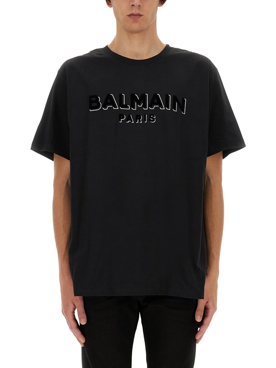 Scarpe / Italia / BALMAIN T-SHIRT IN JERSEY DI COTONE CON LOGO FLOCCATO sconto