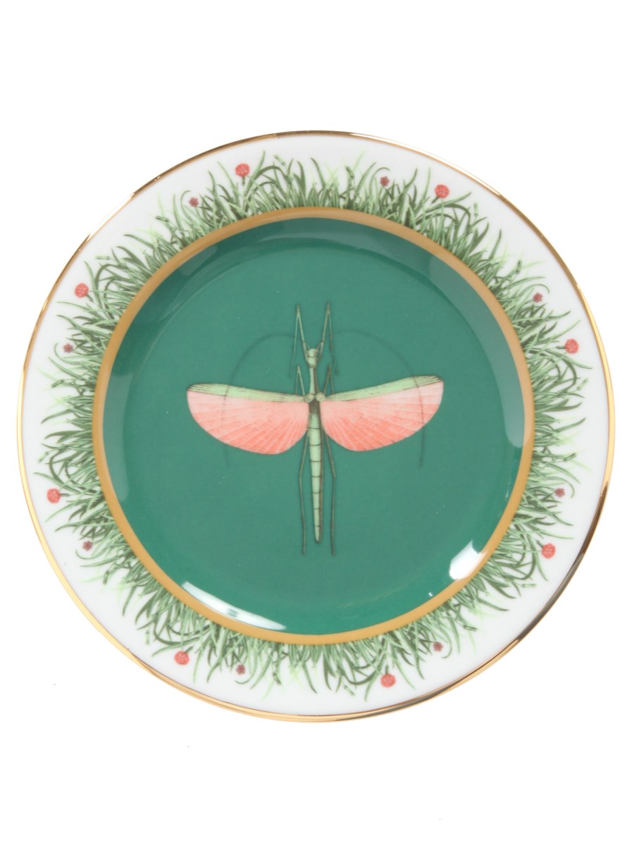 LA DOUBLEJ PIATTO DA DESSERT IN PORCELLANA CON STAMPA LIBELLULA SET DA DUE