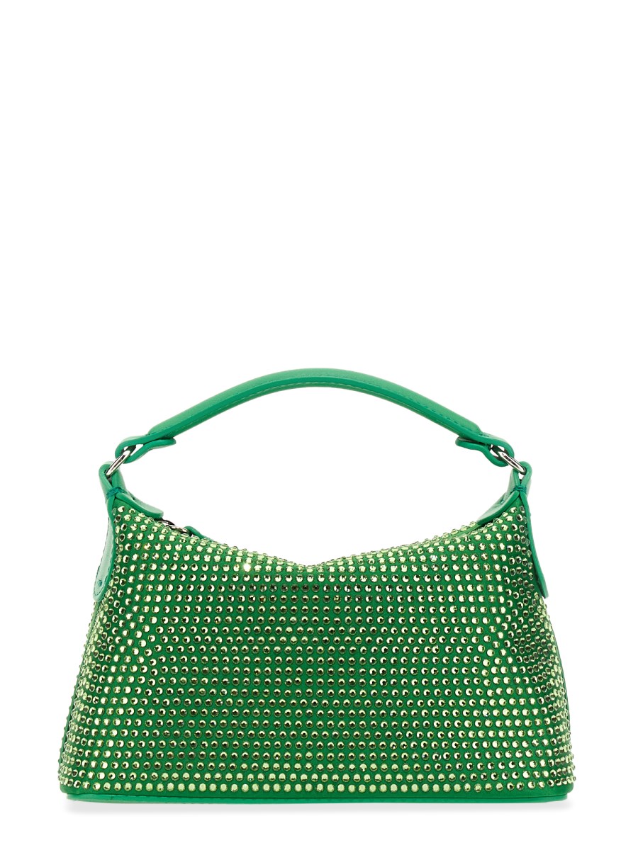 - MANICO SINGOLO- TRACOLLA REMOVIBILE- CHIUSURA CON ZIP- SCOMPARTO PRINCIPALE- STRASS APPLICATI ALL OVER- DIMENSIONI: A 12 CM X L 20 CM X P 8 CM- 100% PELLE- MADE IN ITALY