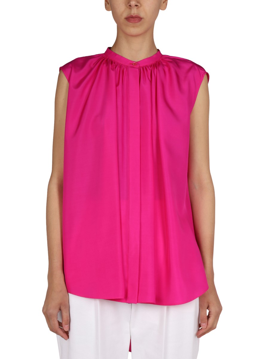 ALEXANDER McQUEEN BLUSA IN SETA CON COLLETTO ALLA COREANA