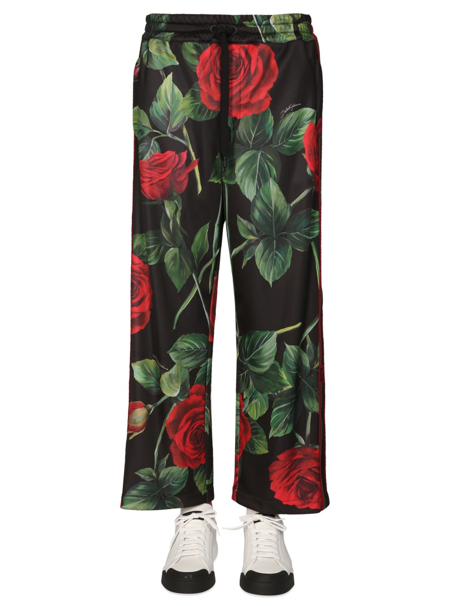 DOLCE & GABBANA PANTALONE JOGGING IN JERSEY TECNICO CON STAMPA ROSE sconto | Scarpe