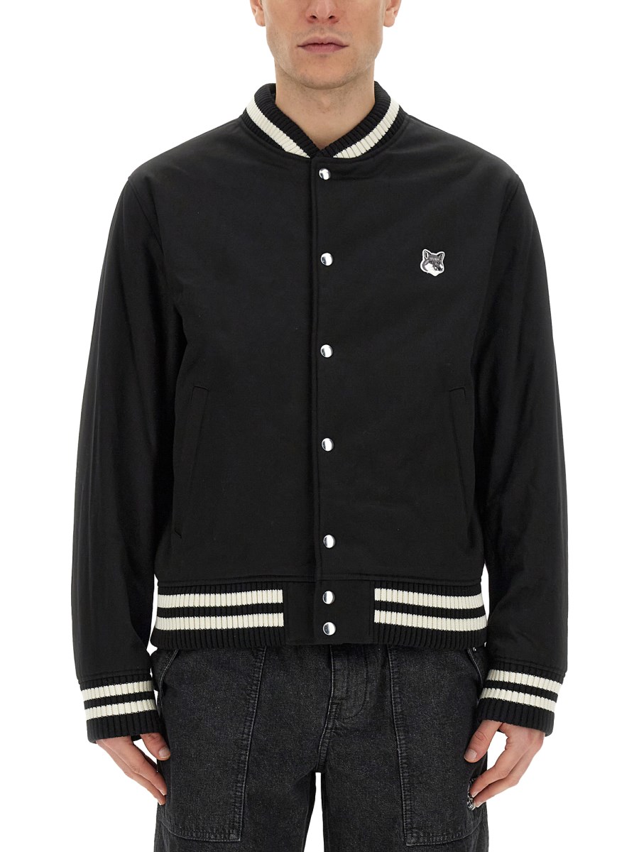 MAISON KITSUNÉ BOMBER CON LOGO IN RASO DI COTONE