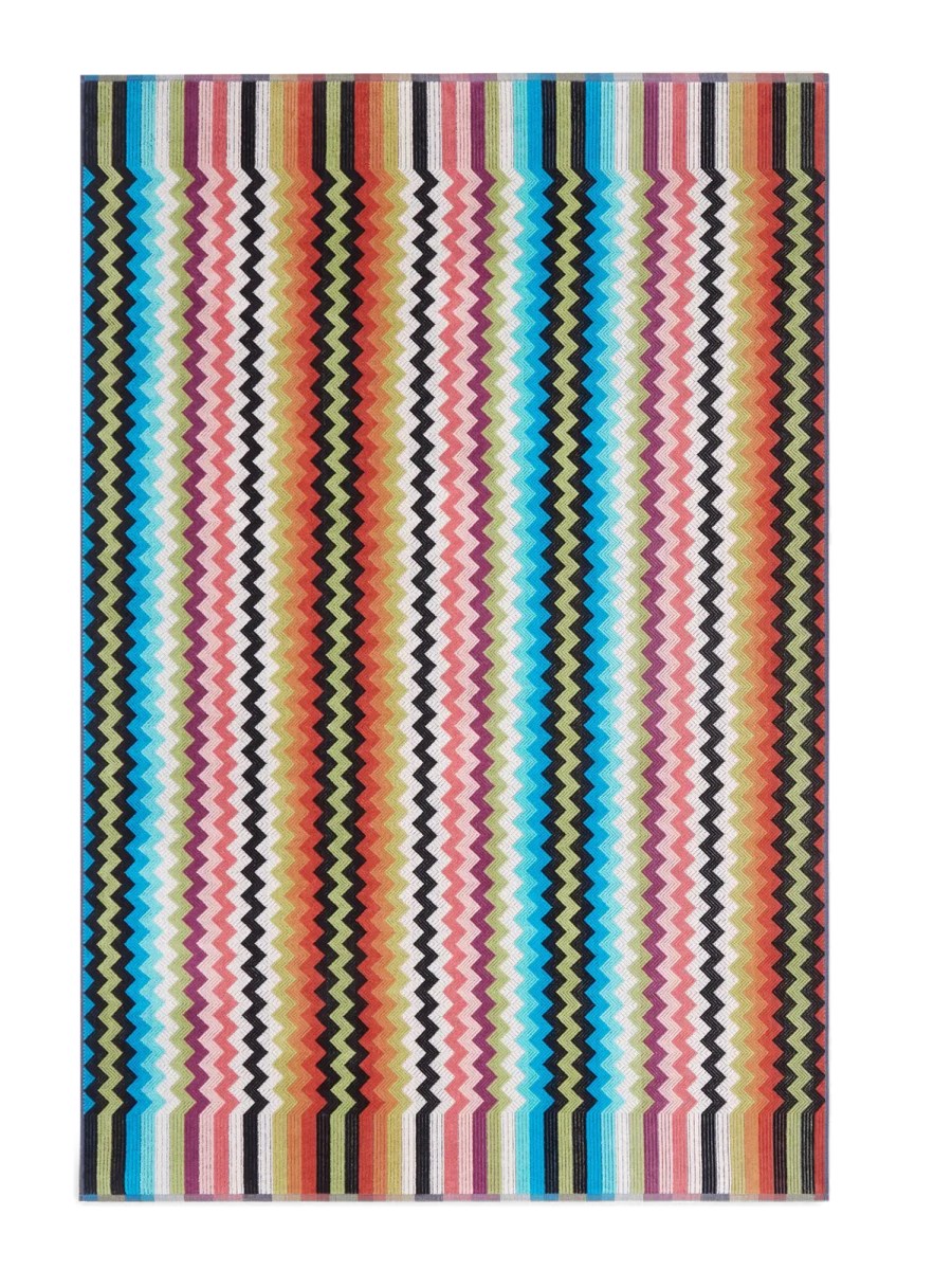 Questo accessorio per il bagno presenta una stampa a zig-zag su un telo da bagno in tela buster di Missoni. Realizzato al 100% in cotone, questo asciugamano è lavabile in lavatrice e diventa più morbido a ogni lavaggio. L'asciugamano misura 150 cm x 100 cm ed è assolutamente morbido sulla pelle.