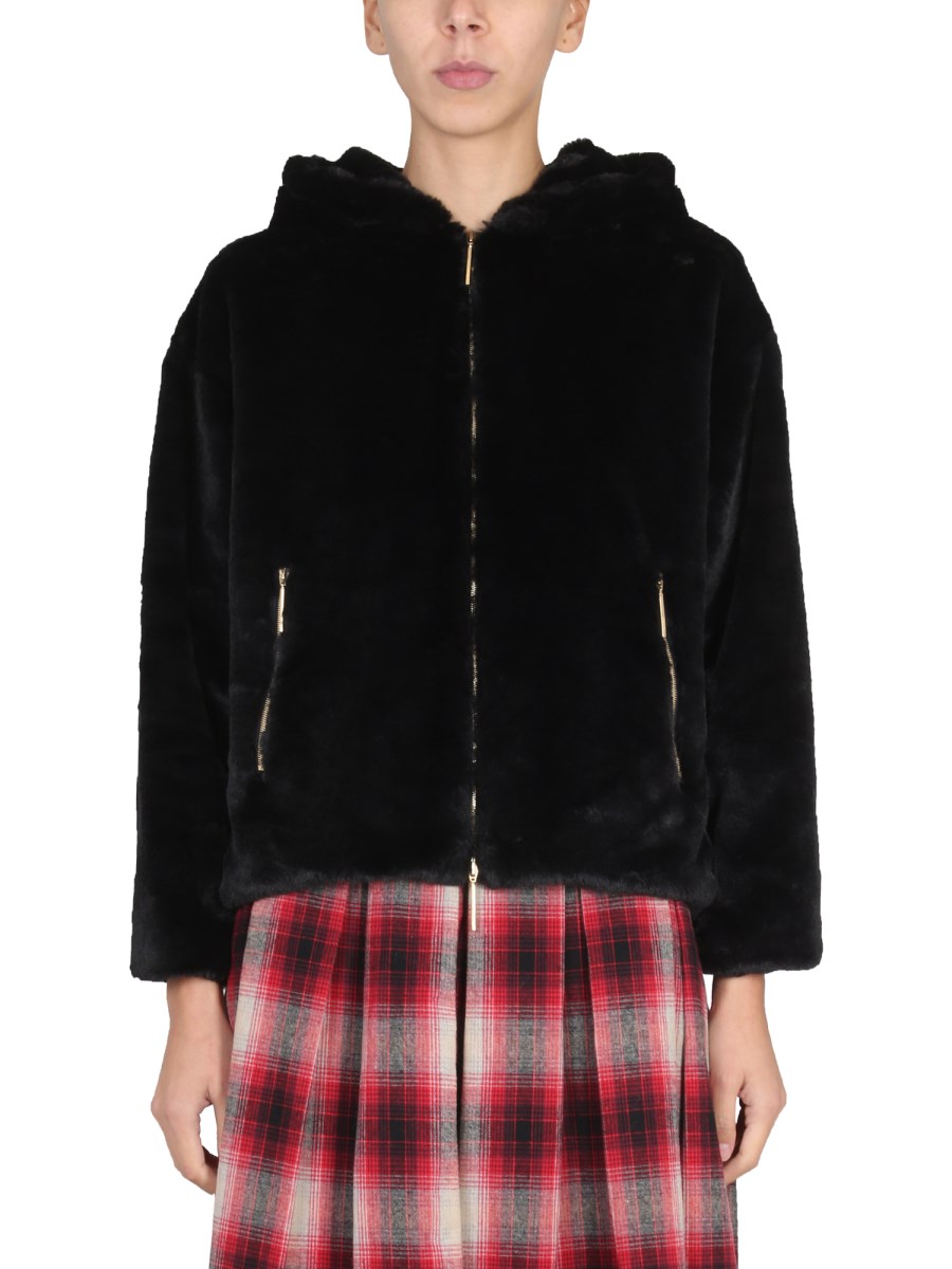 composizione- SCOLLO CON CAPPUCCIO- CHIUSURA CON ZIP- DUE TASCHE CON ZIP- 100% POLIESTERE- LA MODELLA É ALTA 180 CM E INDOSSA LA TAGLIA 2
