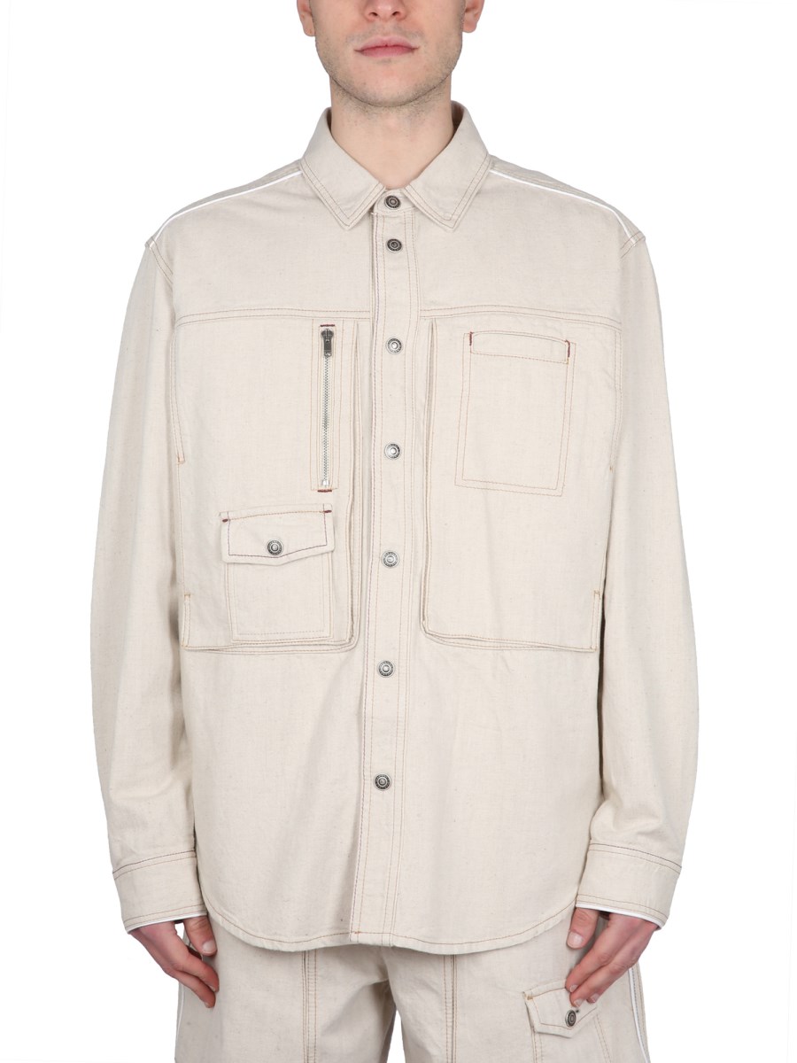 composizione- COLLO CLASSICO- CHIUSURA CON BOTTONI A PRESSIONE- TASCA CON ZIP SUL PETTO- TASCA FRONTALE CON PATTA- 100% COTONE- IL MODELLO È ALTO 185 CM E INDOSSA LA TAGLIA L