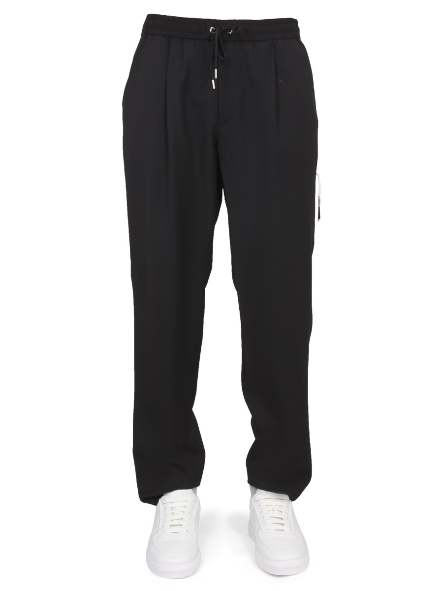 - ELASTICO IN VITA CON COULISSE- DUE TASCHE LATERALI- DUE TASCHE A FILETTO SUL RETRO- BANDA CON LOGO LATERALE- 54% LANA, 44% POLIESTERE, 2% ELASTAN- IL MODELLO È ALTO 190 CM E INDOSSA LA TAGLIA 52 IT
