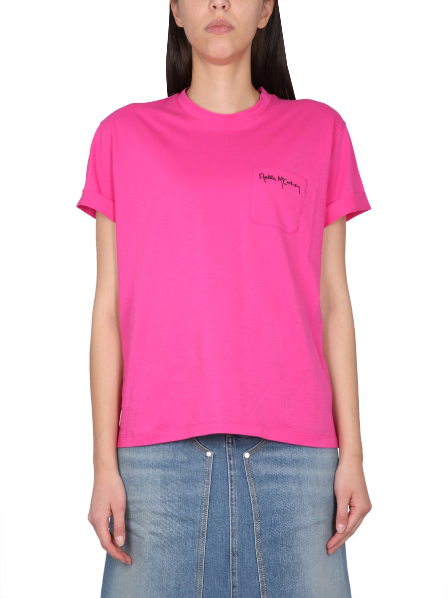 STELLA McCARTNEY T-SHIRT IN JERSEY DI COTONE CON RICAMO LOGO