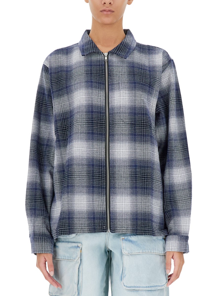 composizione- COLLETTO CLASSICO- CHIUSURA FRONTALE CON ZIP- POLSINI CON BOTTONI- MOTEVO A QUADRI ALLOVER- REGULAR FIT- 100% COTONE- IL MODELLO È ALTO 190 CM E INDOSSA LA TAGLIA M- LA MODELLA È ALTA 180 CM E INDOSSA LA TAGLIA M