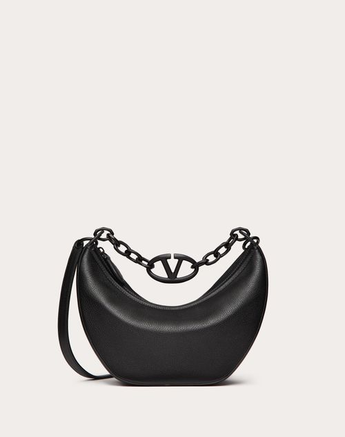 Hobo piccola Valentino Garavani VLogo Moon Bag in vitello granato con catena dettagliata da elemento VLogo Signature metallico. La borsa può essere indossata a spalla/cross-body o a mano grazie alla catena ed alla tracolla in pelle amovibile.- Catena e parti metalliche finitura opaca tono su tono- Tracolla in pelle regolabile e amovibile- Chiusura a zip- Fodera in nappa. Interno: una tasca piatta- Altezza (luce) tracolla: 55 cm- Altezza (luce) catena: 22 cm- Dimensioni: W29xH23xD11 cm- Made in Italy