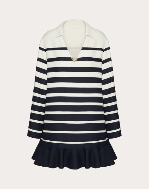 Abito Corto In Crepe Couture Valentino Roomview - Dettaglio V Gold frontale - Crepe Couture Valentino Roomview (65%Lana Vergine, 35%Seta) - Foderato in Habotai (100% Seta) - Lunghezza 87 cm da punto spalla per la taglia 40 IT - Lunghezza manica 82 cm da centro dietro per la taglia 40 IT - La modella è alta 176 cm e indossa una taglia 40 IT - Made in ItalyIl look è completato con una borsa Valentino Garavani Alltime e scarpe Valentino Garavani VLogo Locker.