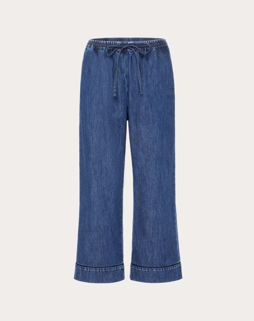 Pantalone Valentino in Chambray Denim - Coulisse in vita- Chambray Denim (100%Cotone) - Sfoderato - Lunghezza 90 cm da punto vita per la taglia 40 IT - La modella è alta 176 cm e indossa una taglia 40 IT - Made in ItalyIl look è completato con una borsa Valentino Garavani VLogo Signature e scarpe Valentino Garavani VLogo Chain.