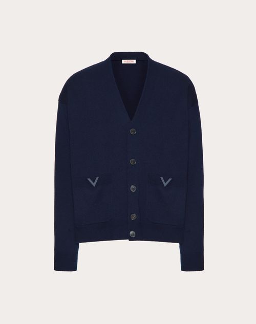 Cardigan Valentino in lana con V Detail gommate- Boxy fit- Finezza:12- V Detail gommate applicate su entrambe le tasche laterali- Chiusura con bottoni- Finiture a coste- Composizione: 100% Lana Vergine- Lunghezza: 67 cm dall'attaccatura posteriore del collo in taglia M- Il modello è alto 187 cm e indossa una taglia M- Made in ItalyIl look è completato con scarpe Valentino Garavani Freedots.
