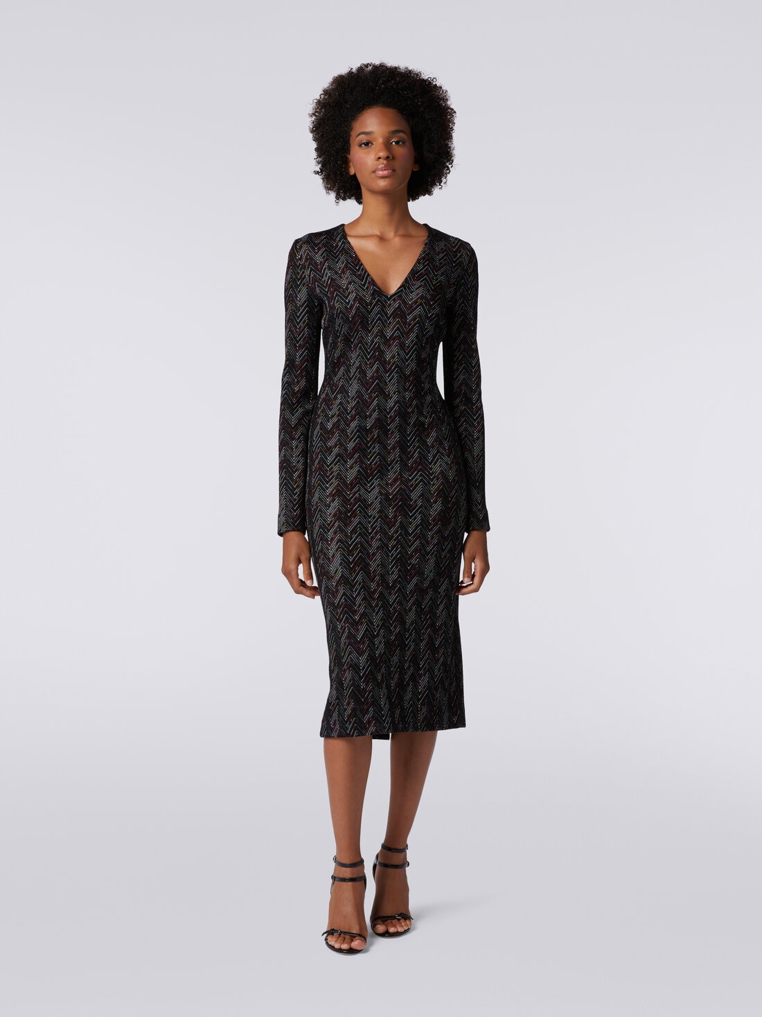 Codice Prodotto: Abito lungo con scollatura a V in lana e viscosa zig zag
