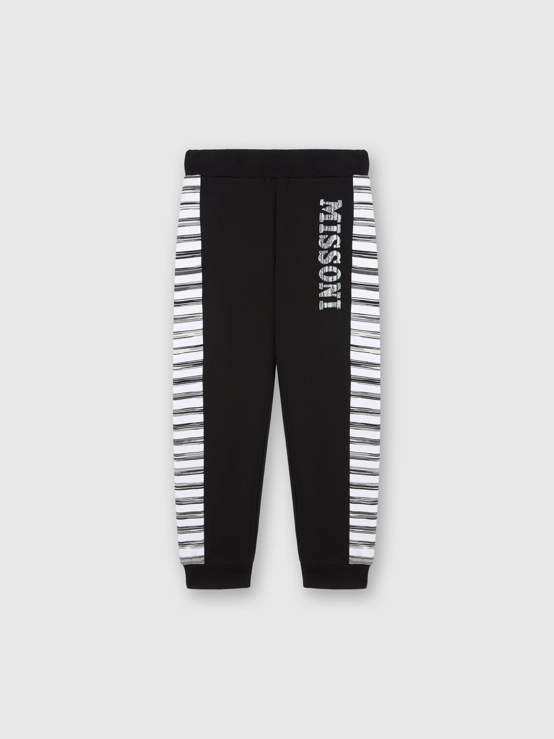 Comodità e stile da vendere per il modello Joggers da bambino firmato Missoni. Realizzati in puro cotone, i pantaloni sportivi esibiscono scritta logo e inserti laterali fiammati.