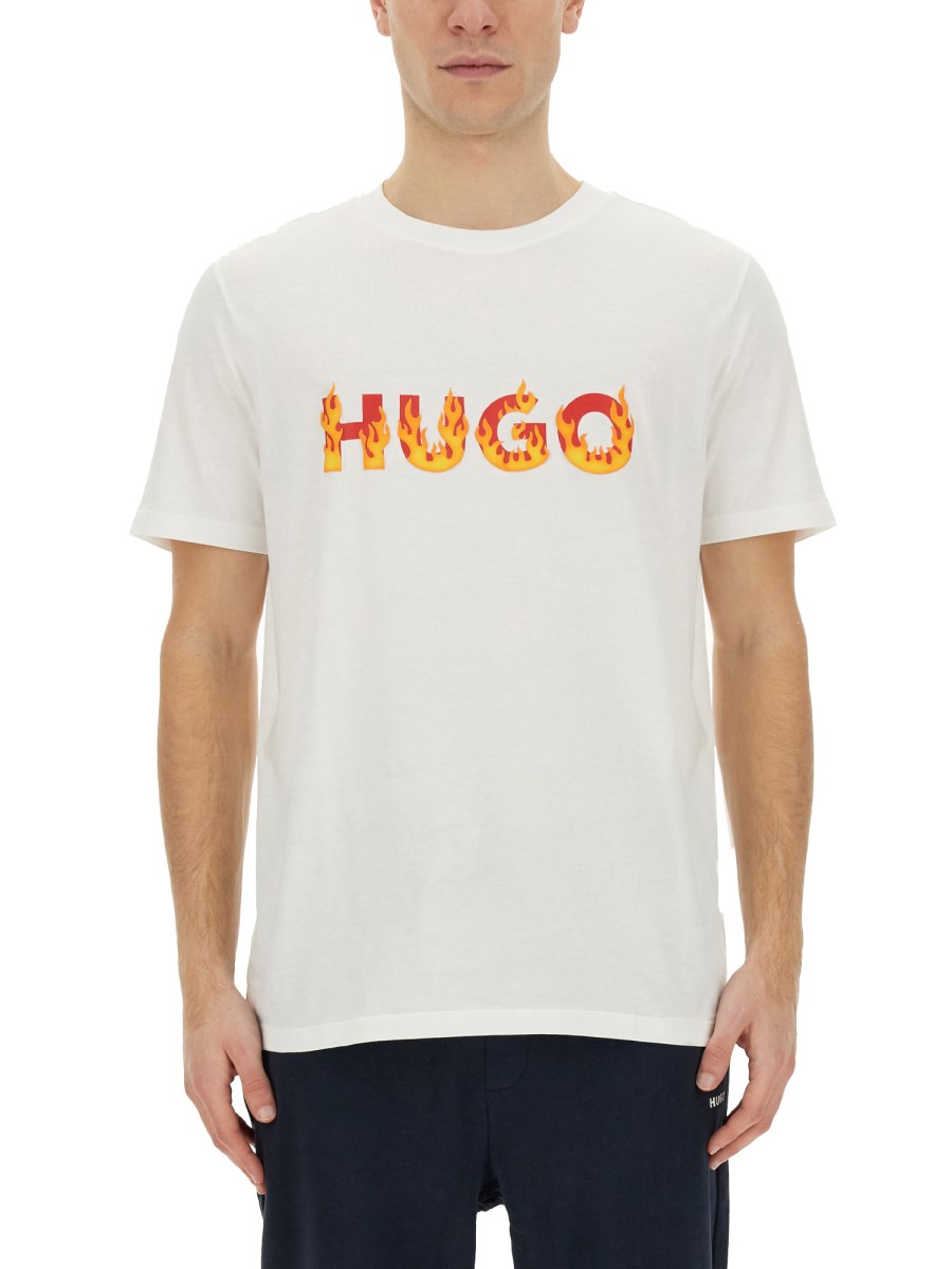 HUGO T-SHIRT IN JERSEY DI COTONE CON STAMPA LOGO