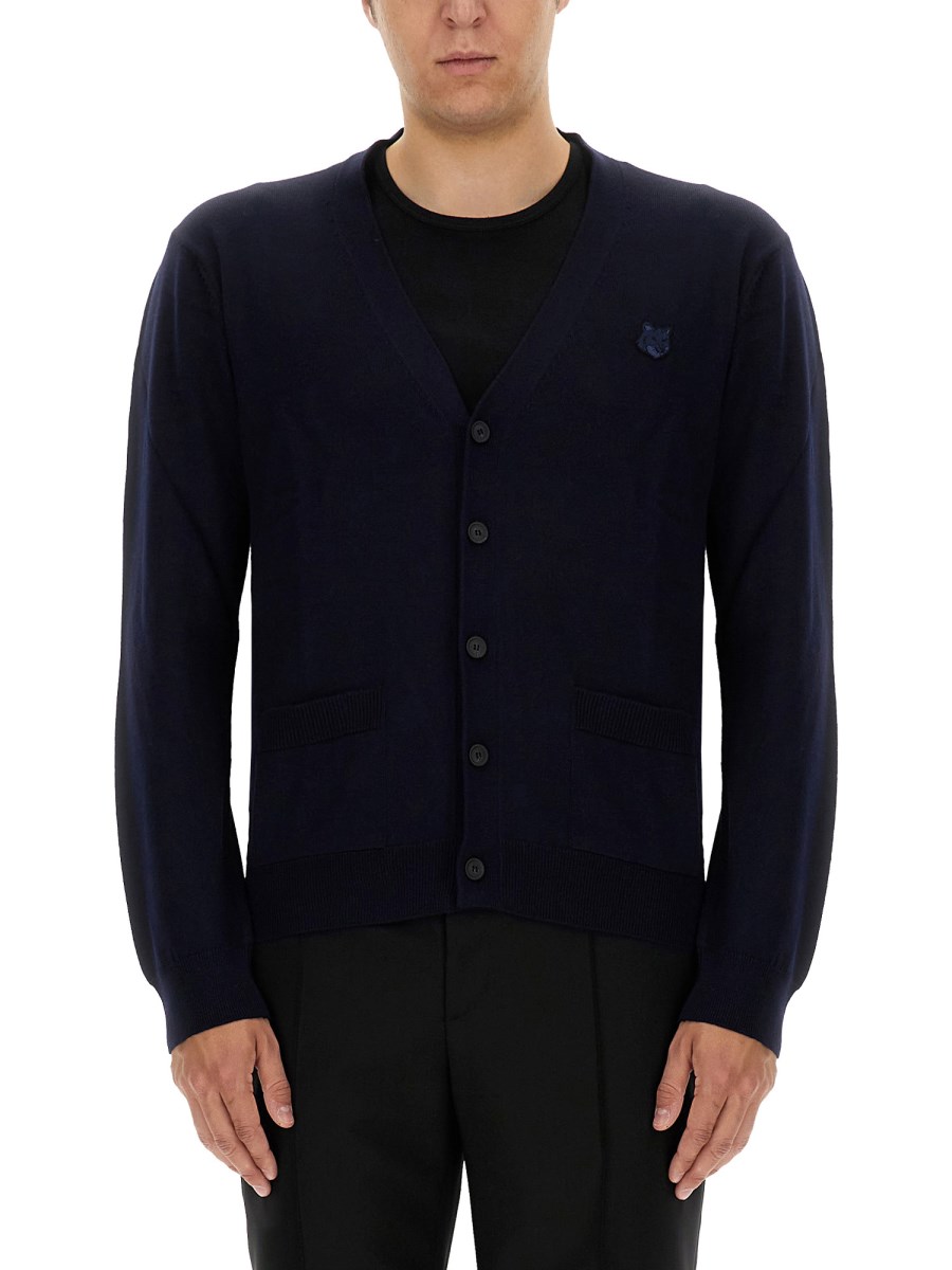 MAISON KITSUNÉ CARDIGAN IN LANA CON PATCH FOX sconto | Scarpe