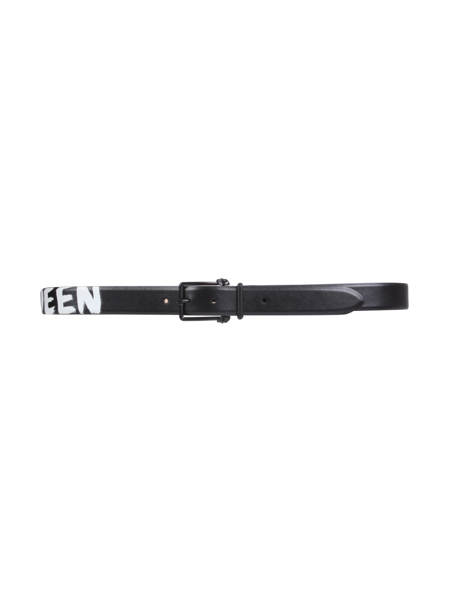 Scarpe / Italia / ALEXANDER McQUEEN CINTURA THIN TWIN SKULL IN PELLE CON STAMPA LOGO GRAFFITI sconto