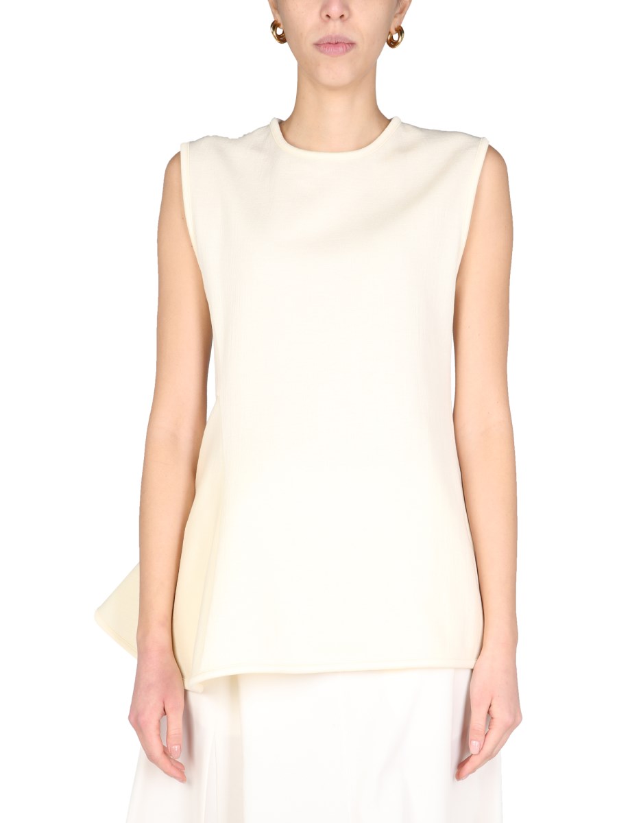 JIL SANDER TOP CON SCOLLO TONDO IN MISTO COTONE