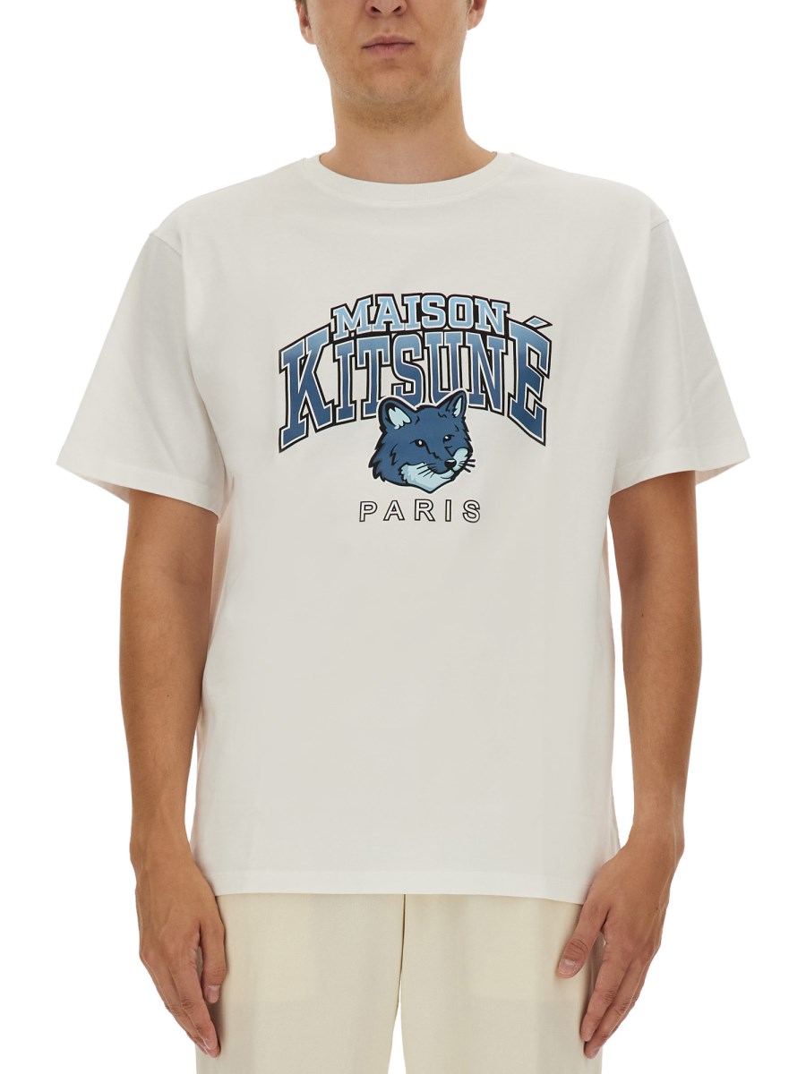 MAISON KITSUNÉ T-SHIRT IN JERSEY DI COTONE CON STAMPA LOGO sconto | Scarpe