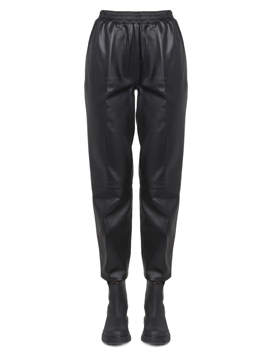 - ELASTICO IN VITA- DUE TASCHE LATERALI- DUE TASCHE A FILETTO SUL RETRO- 100% PELLE- LA MODELLA È ALTA 180 CM E INDOSSA LA TAGLIA 40 IT