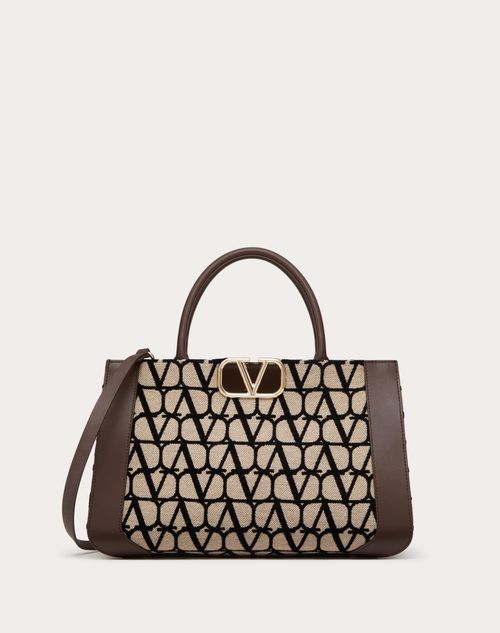 Borsa media a mano Valentino Garavani VLogo Signature in Toile Iconographe con profilo in pelle ed elemento VLogo Signature frontale.- Parti metalliche finitura platino- Tracolla amovibile- Chiusura magnetica- Piedini protettivi- Fodera in tessuto Toile Iconographe. Interno: tasca piatta- Altezza (luce) tracolla: 50 cm- Dimensioni: W35xH22xD16 cm- Made in Italy