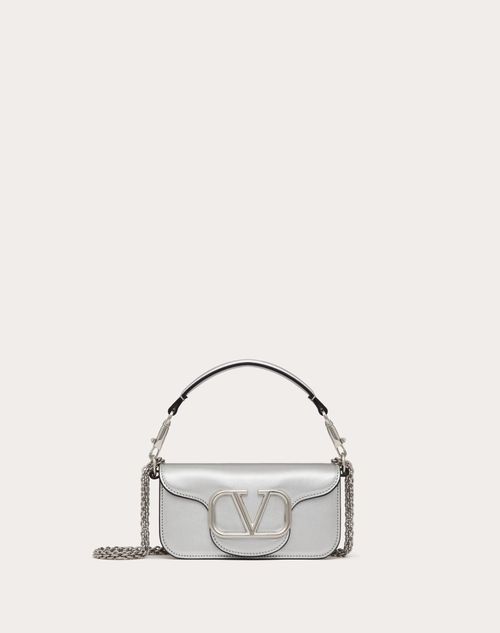 Borsa piccola a spalla Valentino Garavani Locò in vitello metallizzato con elemento VLogo Signature metallico. La borsa può essere indossata a spalla/cross-body o a mano grazie al manico amovibile e alla catena scorrevole e amovibile.- Parti metalliche finitura palladio- Chiusura magnetica- Manico in pelle amovibile- Tracolla con catena scorrevole amovibile- Fodera in nappa. Interno: una tasca piatta- Altezza (luce tracolla): min 33 cm - max 55 cm- Dimensioni: W20xH11xD5 cm- Made in Italy