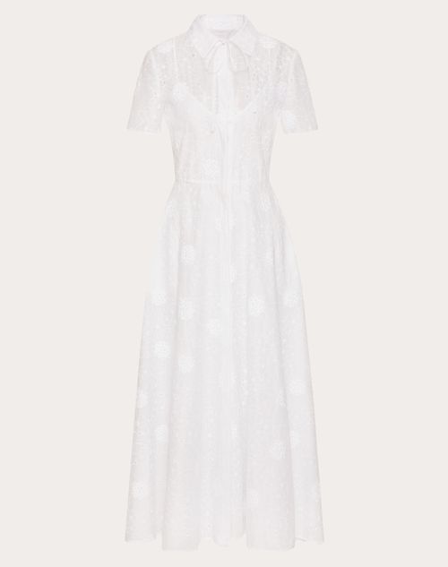 Abito Midi In Daisy Organdis - Chiusura frontale con bottoncini nascosti - Daisy Organdis (93%Cotone, 7%Poliestere) - Foderato in Mussola (100% Cotone) - Lunghezza 130 cm da punto spalla per la taglia 40 IT - Lunghezza manica 45 cm da centro dietro per la taglia 40 IT - La modella è alta 176 cm e indossa una taglia 40 IT - Made in ItalyIl look è completato con una borsa Valentino Garavani VLOGO MOON e scarpe Valentino Garavani The Bold Edition.