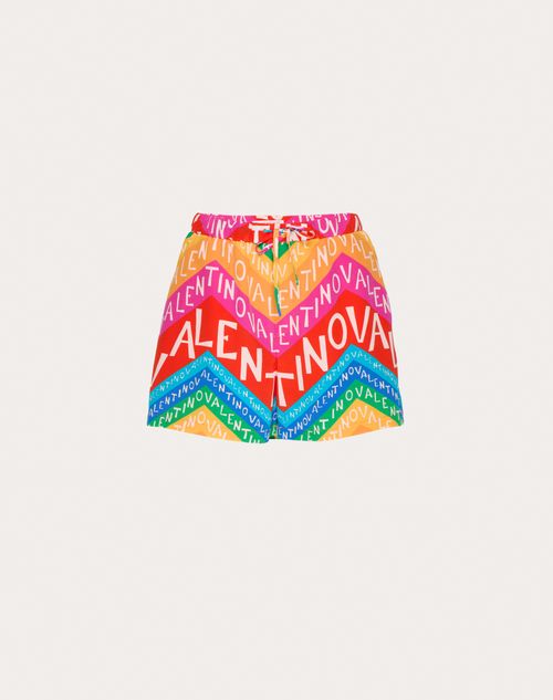 Shorts in Crepe De Chine Valentino Chevron 24 - Coulisse in vita - Crepe De Chine Valentino Chevron 24 (100%Seta) - Foderati in Habotai (100% Seta) - Lunghezza 32,5 cm da punto vita per la taglia 40 IT - Fondo gamba 34 cm per la taglia 40 IT - Lunghezza interna della gamba 8,5 cm per la taglia 40 IT - La modella è alta 176 cm e indossa una taglia 40 IT - Made in ItalyIl look è completato con una borsa Valentino Garavani Escape Collection 2024 e scarpe Valentino Garavani Escape Collection 2024.