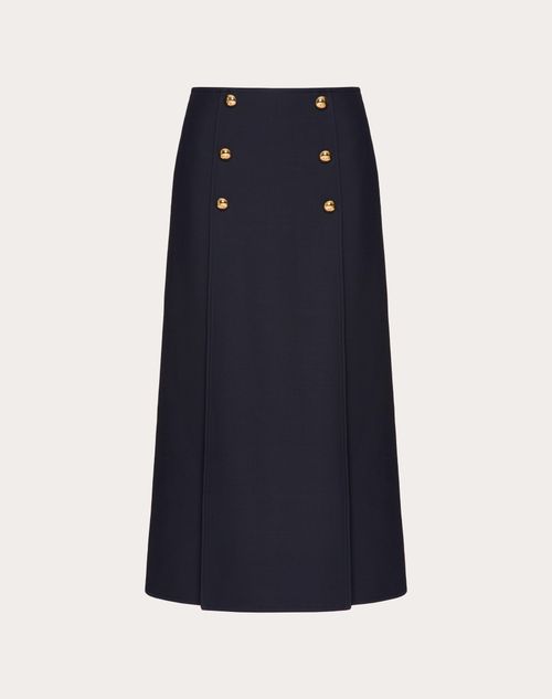 Gonna Midi in Crepe Couture - Chiusura laterale con zip e gancino - Dettaglio bottoni - Crepe Couture (65%Lana Vergine, 35%Seta) - Foderata in Habotai (100% Seta) - Lunghezza 87 cm da punto vita per la taglia 40 IT - La modella è alta 176 cm e indossa una taglia 40 IT - Made in ItalyIl look è completato con una borsa Valentino Garavani VLOGO MOON.